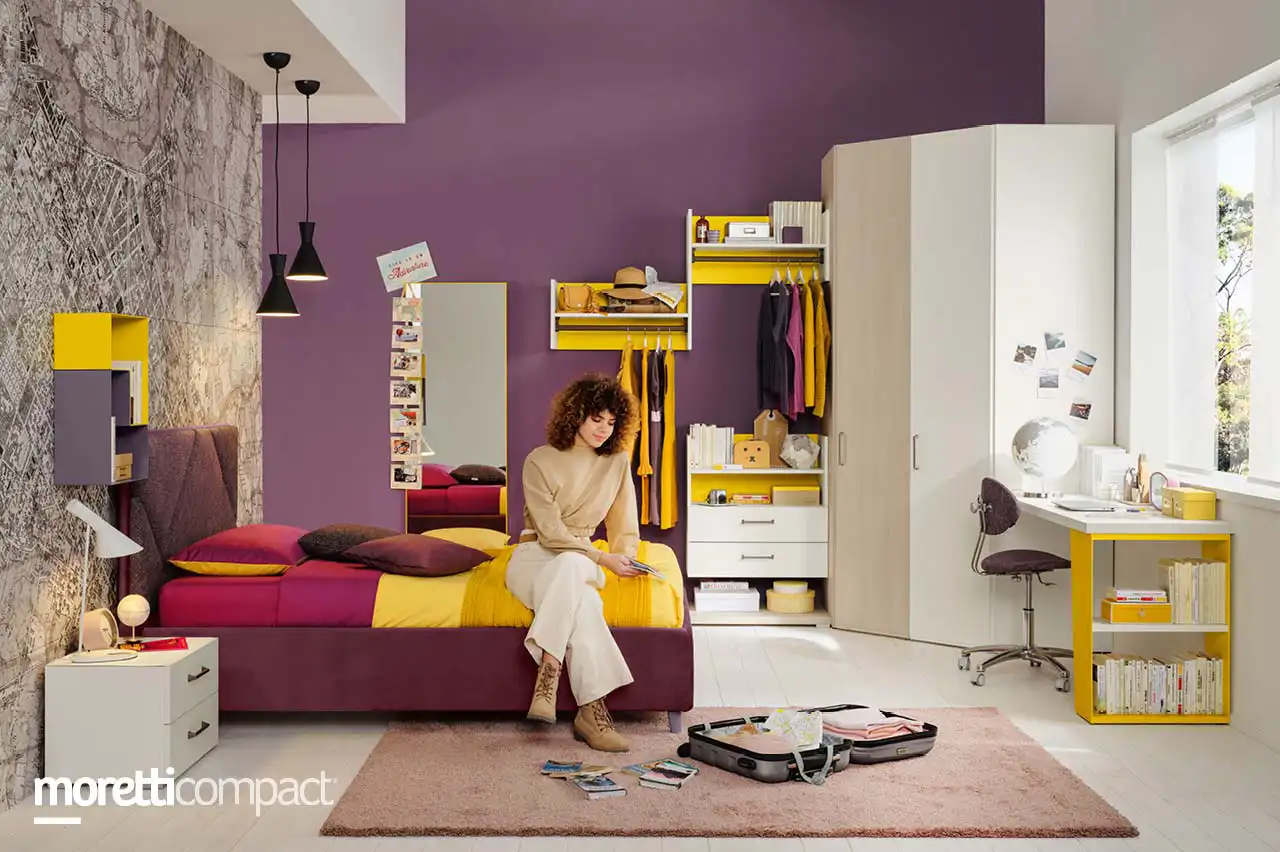 Комната с распашным шкафом, мягкой кроватью и оборудованным рабочим местом. Если отбросить игры, то спальня подростка должна быть местом, где он может учиться, отдыхать и приглашать друзей. По этой причине комната подростка должна быть еще более организованной и разделенной на зоны, предназначенные для различных видов деятельности. Главное при обустройстве - гибкость! Чтобы успешно создать такую обстановку, важно поговорить с подростком, прислушаться к их желаниям в практичности, вкусам.