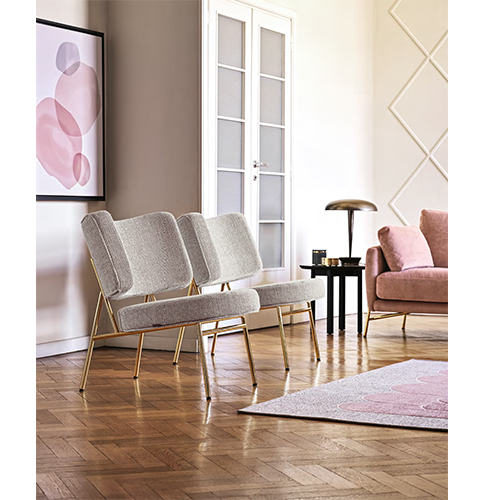 Coco — кресло для отдыха с линиями 1950-х годов, отдающее дань уважения неземному и элегантный стиль легендарной мадемуазель Коко. Характеризуется контрастом между тонкой металлической конструкцией и щедрыми мягкими элементами Коко выбирает по желаемому характеру в зависимости от выбранной отделки и покрытия.