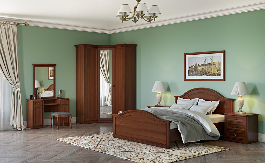 Мебель для спальни из коллекции Ekaterina орех изготовлена из высококлассных материалов и оснащена фурнитурой европейского производства.